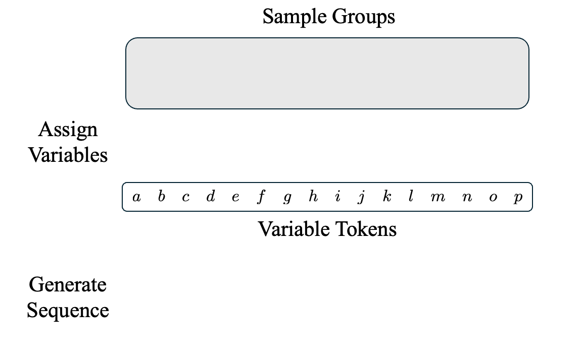 We train transformers to solve arithmetic problems sampled from a mixture of finite algebraic groups (like cyclic and dihedral groups). Each task sequence presents several examples of products between elements in a group with the goal that models will learn to predict the outcome of unseen group products. However, key challenge is that each token is a variable whose meaning changes between sequences. For example, the symbol "g" might represent the identity in one sequence but a 90-degree rotation in another. Models can infer what each symbol means only from how it interacts with other symbols in-context. You can try to solve some example in-context algebra sequences for yourself below.