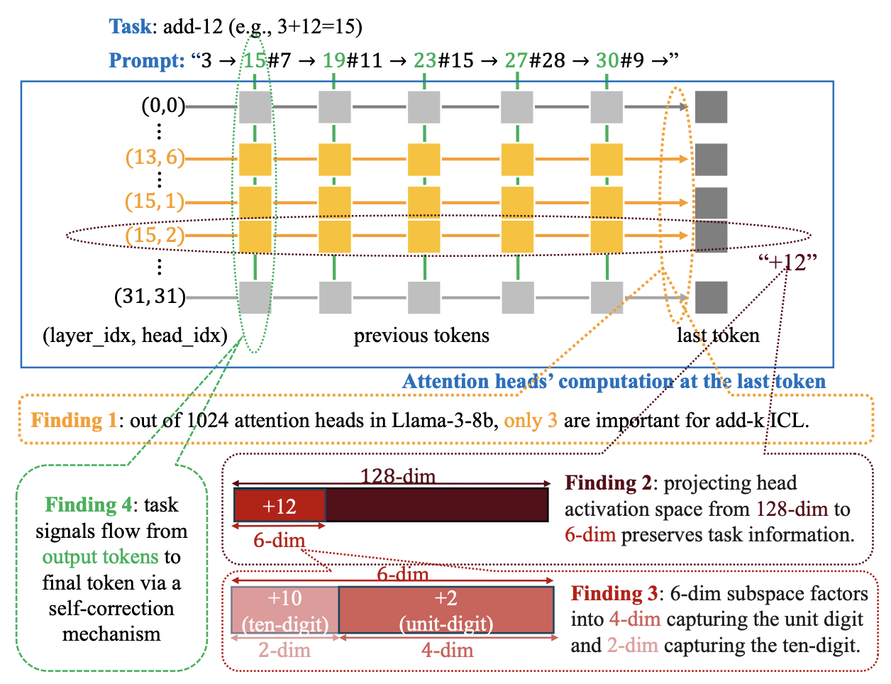 Notes: This work studies how LLMs perform addition in-context (add-k), and isolate a low-rank subspace relevant for the task.